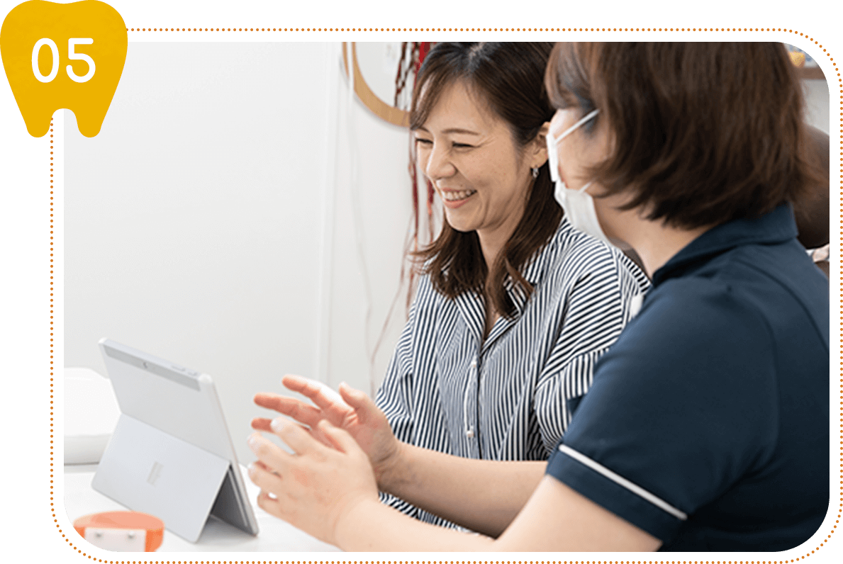 来院される患者様は、歯やお口に何らかの悩みを持たれている方がほとんどです。当院では、まずその辛いお悩みと向き合い正確に症状を把握することから始めます。そのため、治療前にはしっかりカウンセリングを行っております。